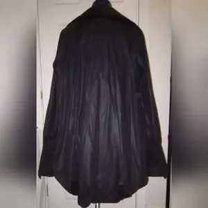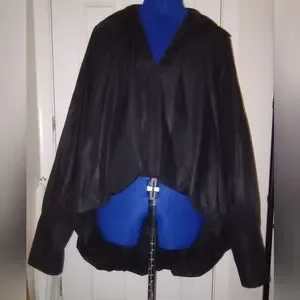 Caribbean Queen's (CQ by CQ) beautifully classy, exaggerated women's puffy black, pullover v-neck blouse, is an oversized SMALL /MEDIUM (S/M), front of blouse delicately shows the midriff, sleeves and front of blouse are puffy/ballooned, fabric is perfectly polished giving it it's beautiful classy look, the sleeves at the wrist can be either left down for a fitted look or folded up for a slightly dramatic flare, the back of the blouse drapes over the buttocks and is trimmed in a short feminine ruffle. There are NO flaws, this blouse is in perfect condition and never worn, it also comes from a clean and smoke-free environment.