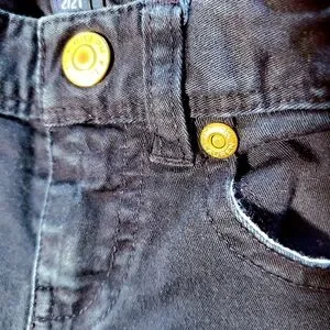 •Elastic and adjustable waist band, belt loops, gold color accent buttons