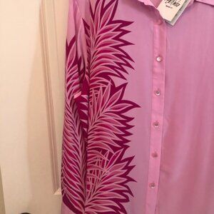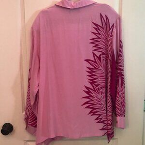 NWT Vintage Bob Mackie 100% Silk Wearable Art Pink Palms Blouse Shirt Size XL
