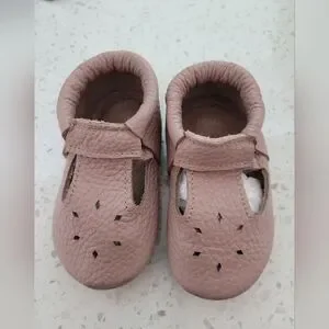 adorable dusty pink mary jane soft real leather handmade moccasins. minimal use see photos. in box. size 5 about 1 year