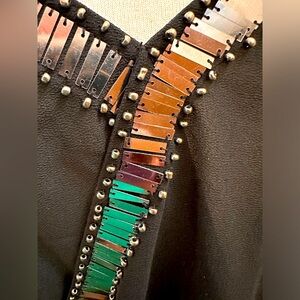 Fun & flirty Ya Los Angeles sequin and bead detail cross front camisole. Adjustable straps. Sheer fabric. 60% silk, 40% polyester. No stretch. Very good condition.