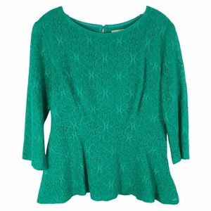 Anthropologie•Moulinette Soeurs•Green Lace Peplum Blouse•Sz 4