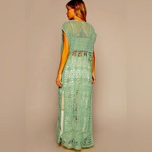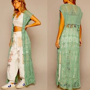 907. 🛑POL LAST 1 below cost! Maxi Cardigan Duster Green Slit Crochet Sleeveless
