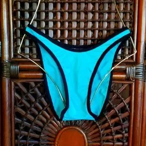 Bikini Bottoms Two-Fer Turquoise-Black Size Medium EUC