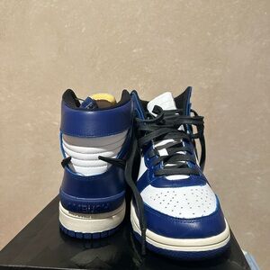 Adding to their collection of idiosyncratic Nike Dunks, Nike and AMBUSH bring a Deep Royal colorway to the unique silhouette. An exaggerated black Swoosh extends towards the heel and from there, bold AMBUSH branding projects off an elevated heel cap. Lastly, Deep Royal leather overlays are stacked on white leather panels to complete the design.
