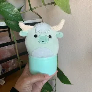 Iver (the very sought after Highland Cow Mint Green Easter Exclusive squishmallow), this is a 4-5 inch. from a capsule.