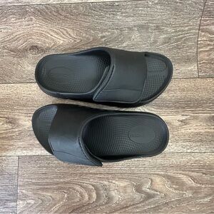 Oofos Ooahh Matte Black M7 W9 Sport Flex Slide Recovery Adjustable Hook & Loop
