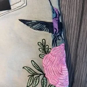 🆕 HOMME + FEMME 🔥 DENIM EMBROIDERED HUMMINGBIRD FLORAL SHORTS