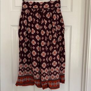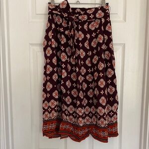 Twirl-worthy midi skirt in a beautiful ditsy medallion print. Drapes beautifully with a flattering tie waist. Effortless pull-on styling.
