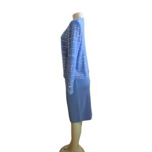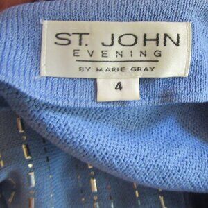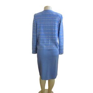 Vtg. St John Marie Gray Evening Blue Knit Skirt Suit w Rhinestones, Sz 4 & 6