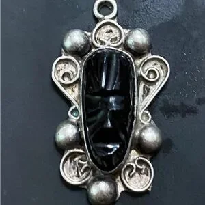 Vintage Tribal Onyx & Sterling Pendant