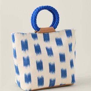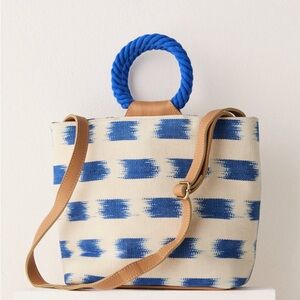 Mercado Global Dalia Blue Brush Strokes Woven and Leather Tote Bag Crossbody