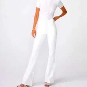 NWT Unpublished Janet High Rise Flare Buttonfly white jeans. Bi-stretch fabric. Size 28. 97% cotton 3% spandex. 4 pockets and belt loops. Comfortable and stylish!