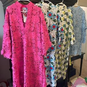 La Vie Style House 3D Lace Kaftan, ONE Size, this dress is a total stunner!! I wear mine with heels, flip flops and tennis shoes! To the beach or to a wedding!! It WON’T disappoint!! Every time I wear one I get tons of complements!!! Such a fun and girlie dress!!! NEVER WORN! NWOT!