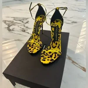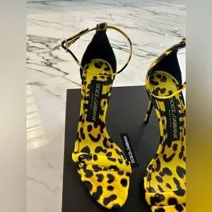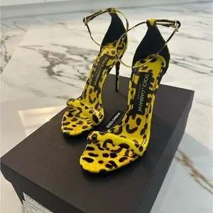 NIB Dolce & Gabbana Yellow Leopard Leather Heels