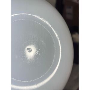 Absolutely perfect. I don't even see a flea bite. Luscious turquoise blue and a soft gray . Perfect on each side. I can't read the bottom. It looks like an 11. The inside is white and bright. It is 10" across.