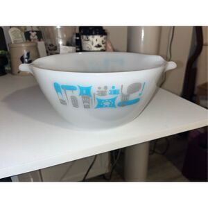 Vintage MCM Fire King Atomic Blue Heaven 10 inch bowl flawless