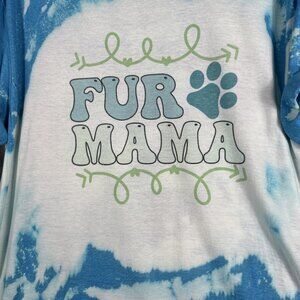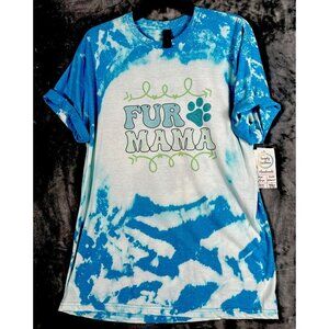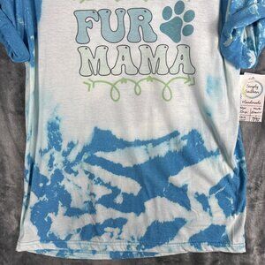 Women’s Dog Mom T Shirt “Fur Mama” Dog Lovers Blue Tye Dyed Shirt Adult Large