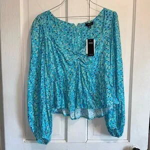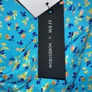 AFRM x Nordstrom Blue Floral Ruched Balloon Sleeve Crop Top Size Medium