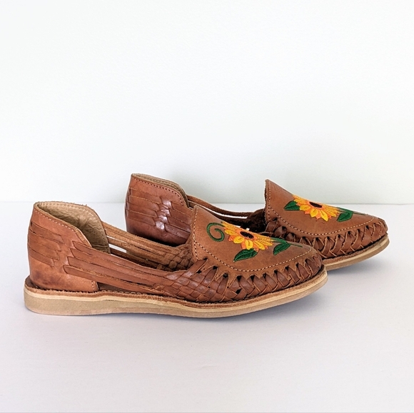 🇲🇽 Cacahi's Leather Huaraches With Sunflower Design Made In Mexico