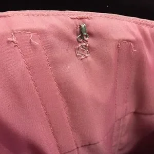 Skirt has been taken up approximately 1 inch to prevent dragging.