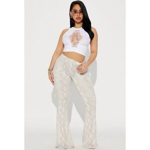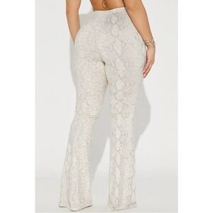 Snakeskin cream/white flare pants juniors size small high rise stretchy