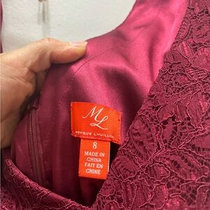 Gorgeous low V cut, sleeveless fit and flare burgundy gown