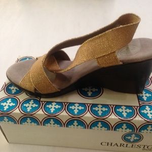 Charleston Shoe Co. Gibbes Metallic Gold Wedges