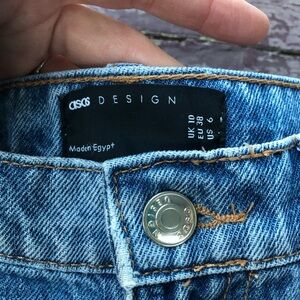 ASOS Denim Comfort Mom Shorts in Midwash Blue. High rise, rolled hems, 100% cotton, made in Egypt. Very wide leg openings. Super cute shirts in a trendy style. Very well made. Excellent used condition, no flaws. Size 6.