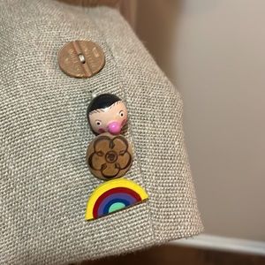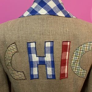 Be retro cool wearing this vintage linen blazer by Moschino Cheap and Chic! Pair with white jeans for a finished look. Unique buttons, all different including Olive Oyl!
