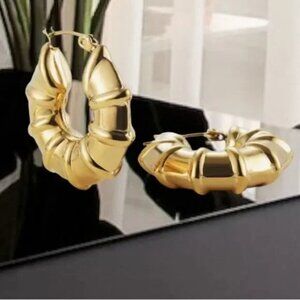 ZARA BAMBOO 18K GOLD FAMOUS DESIGNER HOOP EARRINGS