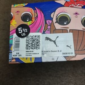 Black PUMA Cali Sport x Queen B Jr - LOL Surprise Platform Girls Shoes w/ gold & black glitter details.