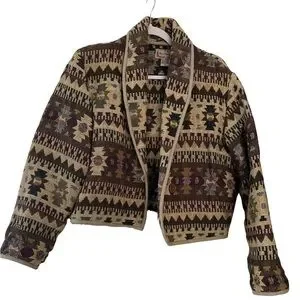 Vintage New Direction Cropped Jacket Cotton Aztec Print Small Southwest