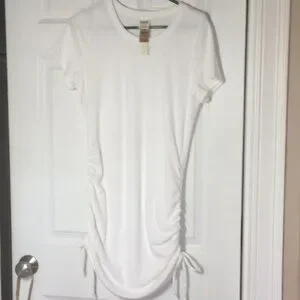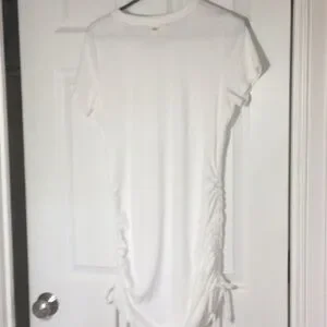 New with tags…can be worn as dress or swim coverup…side ties can make longer or shorter..cute for summer…has alittle scuff on bottom left.. I’m sure will come out in the wash