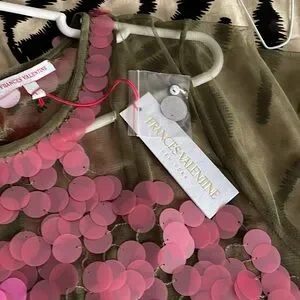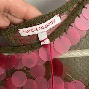 Olive/ pink; approximately pit to pit-19.5”, length-37.5”, maybe missing few sequins ( but not visible)