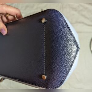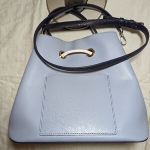 Like new condition tricolor bucket bag in sky blue, navy blue, and white. Silver tone hardware. Long strap included! My call out is just the feet have some rubbing.