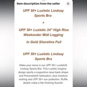 UPF 50+ Luxletic Lindsay Sports Bra, Size XS