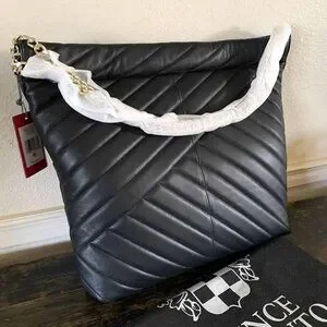 Vince Camuto Pehri Large Quilted Black Leather Hobo Shoulder Bag-24 HR SALE