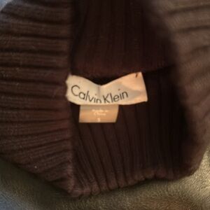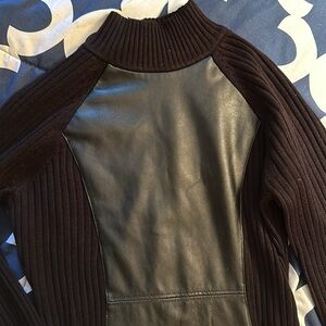 Calvin Klein Long Sleeve Sweater Dress, Faux Leather Front Black Small