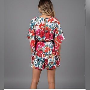 Boho Floral Print Batwing Sleeve Romper