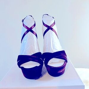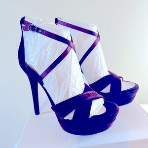 ***BRAND NEW WITH BOX, NWOT, NEVER BEEN WORN*** Jessica Simpson Roxelle Velvet Platform Heels. Criss-cross accent over forefoot and ankle strap to buckle closure. 4 7/10” covered heel and 3/4” platform. Amazing color. Smoke Free Home!!