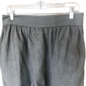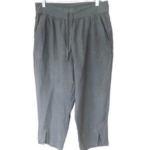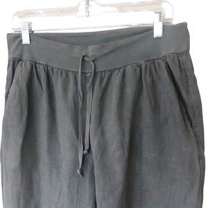 FLAX Cropped Linen Drawstring Pants With Pockets and Front Ankle Slits M