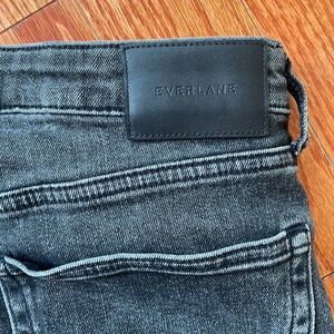 Super comfortable, thick but soft high rise jean from Everlane! Slightly cropped for a great look with boots. Soft washed black color that looks broken in.