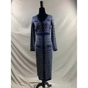 Button Front Pattern Sweater Dress Blue