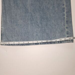Women's Extra Wide Leg High Rise Front Pleated Light Blue Jeans. Unsure of brand. Measurements: rise 14.5", inseam 26.5", width of pant leg at bottom 16", waist 13.5". Front and back pockets, inside straps to hang up. Great used condition.
