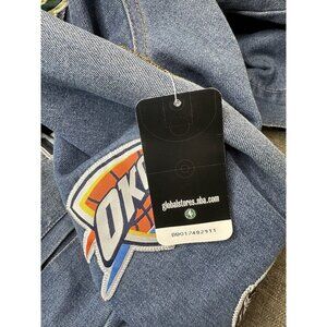 NBA Global Stores Mens Blue Denim Jacket Size Medium Team Stitched Logo Patches