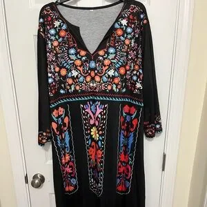 Colorful boho maxi, lightweight poly fabric. See details on the sleeves. Runs slightly small for a 4X