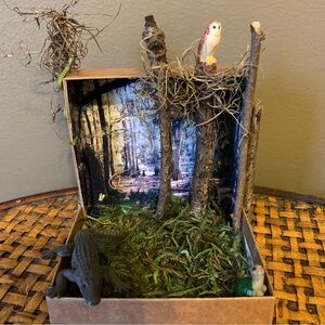 Swamp Forest Alligator Owl Moss Trees Miniature Bookshelf Diorama, Book Nook