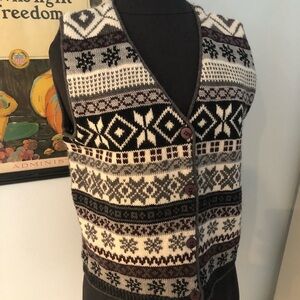 Vintage Snowflake Nordic Style Angora Wool Blend Button Knit Vest Waistcoat M