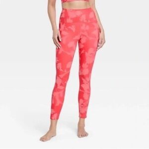 All In Motion High Waist Curvy Fit Brushed Sculpted Melon Pink Floral Leggings target style more details in pictures athleisure yoga exercise fit